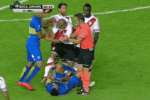 本赛季的阿根廷甲级联赛,博卡与河床的两回合对话一共出现了17张黄牌与2张红牌。