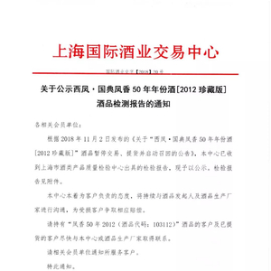 ▲关于公示西凤·国典凤香50年年份酒[2012珍藏版] 酒品检测报告的通知