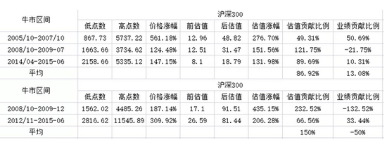 1.以上选取了沪深300和中证500的几轮牛市的贡献,假设增长贡献两项一共100%,那么大概可以判断,针对A股的情况是牛市股价大幅上涨贡献程度其中价值增长贡献不超过20%,而估值增长贡献80%以上。美股的估值经常在15到25波动,A股估值甚至从20-100波动(以上是个股波动,个股波动常常比指数波动更大)