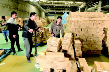 电商企业员工正在备货装货。