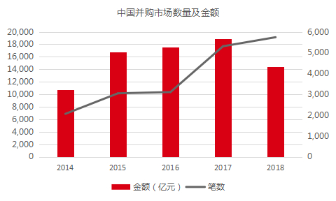 整体并购市场虽然交易笔数比2017年小幅提高,但是整体金额出现下降,单笔并购金额下降到2.5亿,与2017年相比下降了30%。