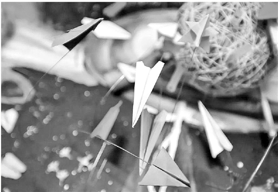 在试飞现场,记者注意到,有的孩子是像投标枪一样向前向上投掷,而有的孩子则用手拎着纸飞机的背脊,垂直方向由下向上扔。孩子们的表现不一,状态不好的一两秒飞机就坠地了,状态好的四五秒,偶尔有超过七八秒的,马上迎来一片雷鸣般掌声。