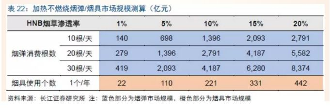 对于国内市场,长江证券研究报告表示,国内蒸汽电子烟起步较早但发展曲折,目前处于政府“无监管”、行业“无秩序”、产品“无标准”的灰色状态,2017年市场规模约40亿元,相比中国超过万亿级别的烟草市场,蒸汽电子烟尚属小众市场。国家烟草专卖局目前明确,加热不燃烧式电子烟属烟草制品,政策限制下,加热不燃烧式电子烟禁止在国内售卖。在2018年7月印发的改革要点通知中,烟草专卖局已明确深化新型烟草创新改革,推进新型烟草制品定型化、产业化、品牌化发展,推进政策法规研究。看好未来国内市场逐步放开。根据测算,假设政策逐步放开,在10%的渗透率背景下,国内加热不燃烧烟弹/烟具市场规模约2000+亿元 /200+亿元,仅烟具一项已可带来巨大成长空间。