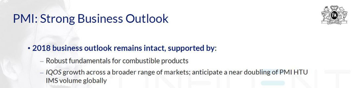IQOS目前已成为电子烟“爆款”产品,目前是全球销售范围最广的加热不燃烧电子烟产品。菲利普莫里斯国际2017年报显示,IQOS的用户数已从2016年的140万增长至2017年的470万以上,增幅超过235.7%。2017年IQOS专用烟弹出货量362亿支,而2015年与2016年对应出货量为3.96亿支和74亿支,年复合增速达121.2%。在最新的公司介绍中,IQOS已成为菲利普莫里斯国际的中流砥柱业务。