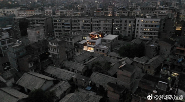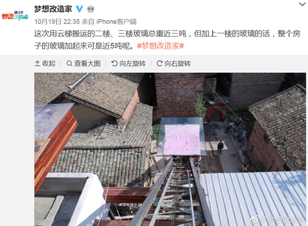 吊窗户上去……当时我也在现场,我当时也蛮惊讶把这个东西解决下来了,因为房子做了木构架,它运上去会很陡,而且那个村子里有很多旧电线也挡在那儿,反正障碍很多,所以上去施工用了一天,前两天一直在想用什么方法,大概用了三天的时间才解决,这也是因为我之前有些疏忽。你提的这个问题实际上都可以解决,采光面积大,玻璃可以碎一点,分割小一点,这样成本相对会低一些,但效果不会太差。因为“梦改”有一些赞助,所以我们都是用最大的。