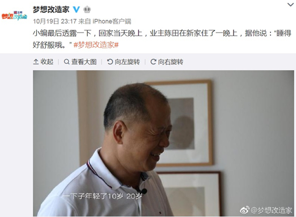 节目不仅是装修房子,帮助需要帮助的人,最重要的是,还传递了一个特别正能量的生活态度:人要学习如何更好的生活,因为不管人生境遇如何,家永远是充满希望的地方……