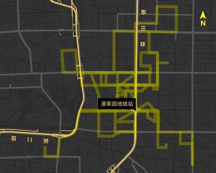 潘家园有大概三十多个小区五百多栋楼,大小道路交汇。这里的建筑年代从上世纪60年代开始数,70年代、80年代、90年代……可以一直数到现在。有的小区规模庞大,包含70栋楼;有的则一栋楼就是一个小区。这些小区之间可能是封闭的,也有的有“密道”相连。