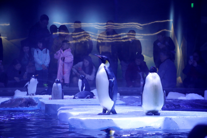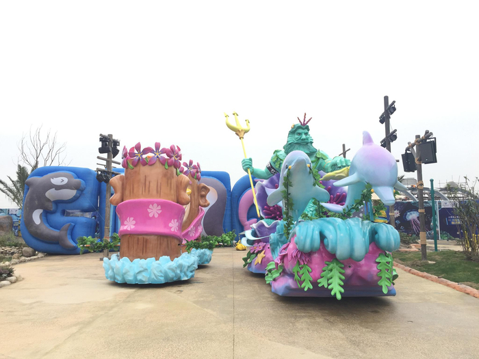 两大高科技影院——天幕影院、超感4D影院,10余项游乐设施——海豚过山车、时空缆车、雪国列车、深海奇航、极速企鹅、海洋木马、鹈鹕大冒险等,还有海豚家园“人豚互动”、“企鹅极地体验”以及“海洋梦幻花车巡游”等。第一财经记者注意到,花车巡游这一项目的表现形式与迪士尼巡游有所类似,但海昌方便强调海洋主题。
