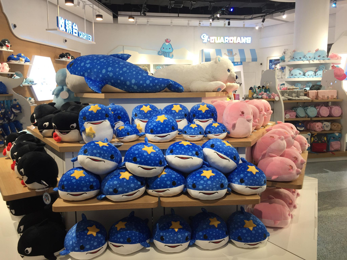 第一财经记者注意到,在上海海昌海洋公园内,其餐饮和按照海洋生物造型开发的周边商品不少,也可见其对于衍生品和二次消费模式正在有意识地加强。