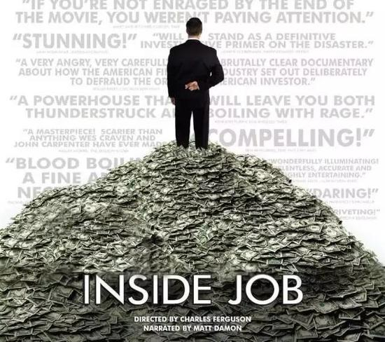 这部电影获得了2010年奥斯卡最佳纪录片奖,它通过对2008年美国金融危机中具体人物和事件的再现,犀利地解释了危机产生的原因。通过采访政治家、记者和金融行业领袖,导演查尔斯·弗格森还原了美国金融改革的历史场景(有些或许是虚构的)。电影结构巧妙,通过深入浅出的演绎,一些晦涩的经济专业术语也变得通俗易懂。