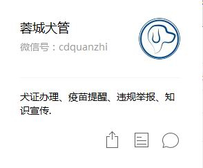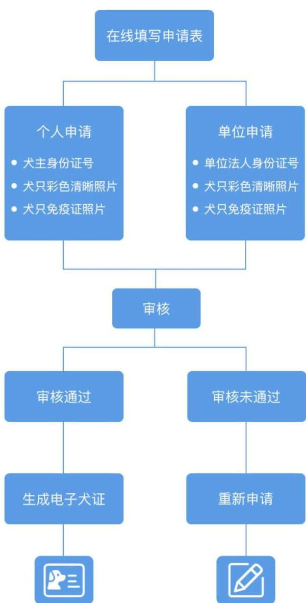 搜索关注“蓉城犬管”微信公众号——点击“犬只管理”——“在线办理”,按步骤上传相应资料,提交审核。