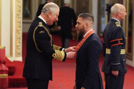 汤姆·哈迪获大英帝国司令勋章(CBE),英王室查尔斯王子颁发。