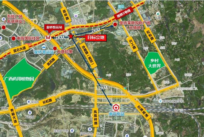 该地块地理位置优越,属南宁市兴宁区兴宁东板块,城市东扩重点发展的区域,属东站商圈辐射范围,享受高铁红利,发展潜力巨大。地块公共交通便利,距离地铁5号线金桥客运站仅1公里。