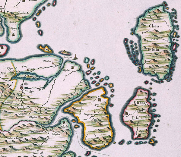 那么,声母n如何变成l的呢?Niampo变成Liampo,是葡萄牙人带来的。嘉靖十九年(1540年)左右,宁波辖下的双屿葡萄牙居留地逐渐形成。葡萄牙人占据双屿之后,把舟山群岛以及对岸的宁波沿海伸入海中的地带称为Liampo,后扩大到江南东部。此词应是从Niampo的音转,因为葡萄牙人先接触闽南人,而闽南语l、n混,Liampo便是闽南语的宁波音读。此词传到葡萄牙本土后,制图学家杜拉多甚至把江南很大部分误当作宁波。