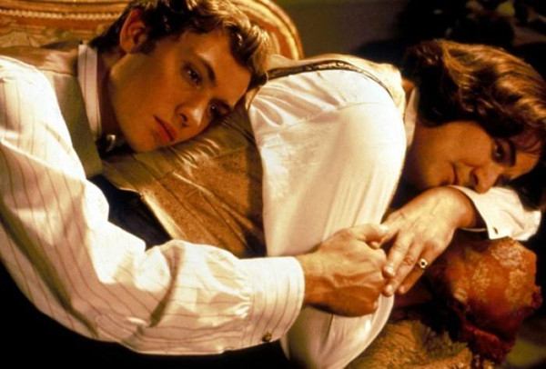 裘德·洛第一次惊艳世人,就是在1997年的《王尔德的情人》中还原了这株“洁白的水仙花”。当年25岁的裘德配得上一切美好的词汇,他脸上的轮廓如同古希腊雕像般完美无瑕,蓝绿相间的眼睛里闪烁着狡黠,举手投足之间显露着贵族的骄傲气质,连声音都带着天鹅绒般的丝滑沉稳。