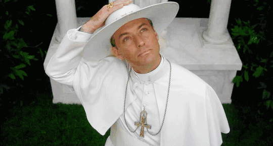 但这些都不是最能释放他表演才华的角色,2016年,意大利鬼才导演保罗·索伦迪诺(《绝美之城》、《年轻气盛》等)执导了10集迷你剧《年轻的教宗》,由Sky、HBO和Canal+三家电视台联合制作。看过这部迷你剧的观众都被裘德饰演的这个叼着香烟的“庇护十三世”震撼,惊呼:“裘德·洛回春了!”