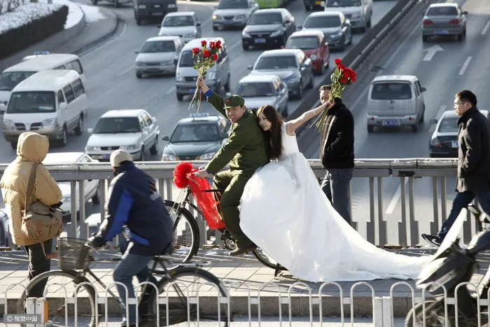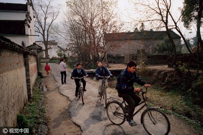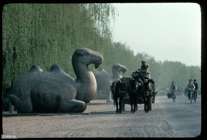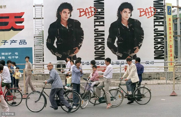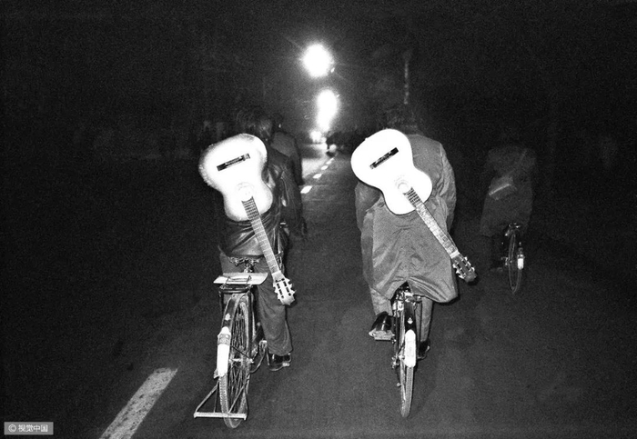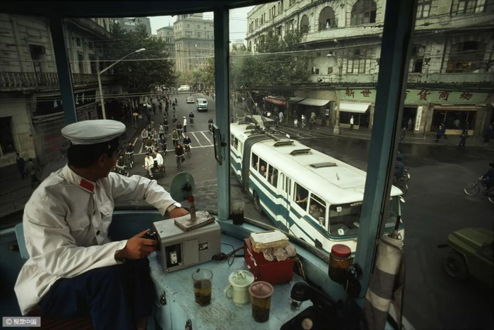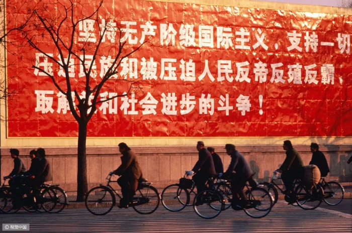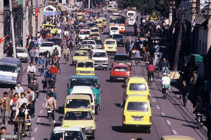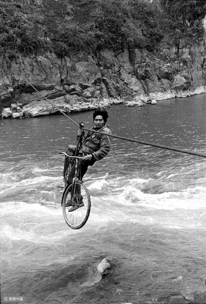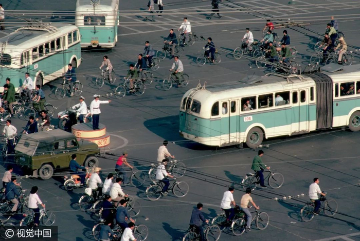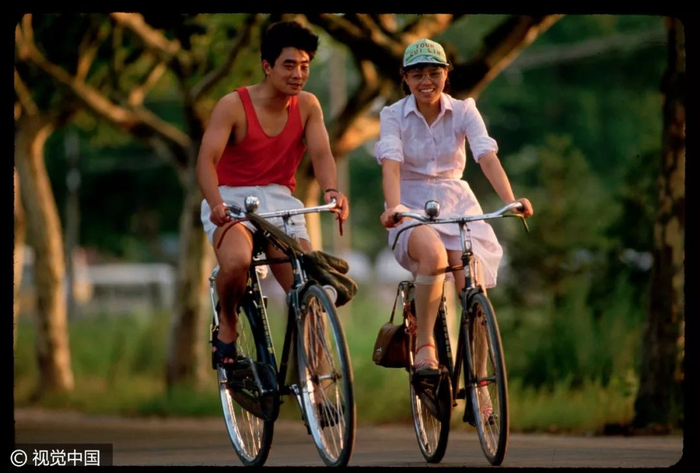 △ 20世纪80年代,自行车和驴车行经北京明长陵的神道。摄影 | 迪安·康格 △ 1980年7月7日,上海南京路上,一名交通民警正根据街道的人流和车辆进行信号灯控制。摄影 | 布鲁斯·戴尔 △ 按照今天的说法,这位出租车司机绝对是一位“人生赢家”,新房集齐了“三大件”——电视机、录音机、自行车。摄影 | 欧文·弗兰肯 △ 1982年的北京街头。摄影 | 迪安·康格 △ 北京巴黎马克西姆餐厅于 1983年9月26日正式对外营业,是最早的中法合资的西餐厅。这给北京市民带来了极大震撼。摄影 | 让-克劳德·多伊奇 △ 1985年,北京长安街。口号标语,直至今天依然是常见的广告形式。观察这些墙上的句子,能捕捉到时代变迁的线索。摄影 | 阎雷 △ 一名北京大学的女学生,戴着头纱从迪安·康格的镜头前经过。北京在春、秋两季多有沙尘天气,这种穿戴方式也是无奈之举。但那个时代的中国人似乎并不太在意,大雨滂沱就穿上雨衣,烈日当空便戴上草帽……是的,自行车就是这样一种全气候条件下的交通工具。摄影 | 迪安·康格 △ 1985年,北京的两个青年身背吉他,在夜晚骑车前行。在当时的北京,这是一种引领时尚的举动。摄影 | 王文澜 △ 男生穿背心、短裤,以便在骑行中露出健硕的肌肉,女生则穿连衣裙来避免走光的困扰——这或许是那个时代骑着自行车谈恋爱的男女标准的穿着配置。当然比起精心准备的服装,如何把控好骑行的速度和两人之间的距离才是关键——骑得太快,容易缩短两人相处的时间;骑得太慢,又会显得过于做作;而骑得太远,又不方便说悄悄话……只有真正的“老司机”,才能把握好这其中的节奏。摄影 | 迪安·康格  △ 1986年3月1日,一辆自行车载起了新疆乌鲁木齐某国营农场的一家人。对于很多中国孩子而言,坐自行车远比骑自行车危险多了——男式自行车的横梁并不宽,即便装上所谓的简易座椅,也始终不过是方寸之地,而你的前方却是不断扑面而来的自行车、汽车和障碍物,那种令人惊恐但却颇为刺激的感受,只有经历过的人才会懂。摄影 | 布鲁斯·戴尔 △ 1988年6月,蛇口工业区某外资企业的工人骑车上班。1983年1月,日本三洋株式会社在深圳蛇口工业区投资建厂。伴随这种全新生产方式走进深圳的,还有诸多来自内地各省份的求职者,而当地人对其“外来妹” 的称呼,最终伴随着1991年陈小艺、汤镇宗主演的同名电视剧《外来妹》而为国人所熟悉。摄影 | 蒋铎 △ 1989年6月11日,上海街头,人们在一张巨大的迈克尔·杰克逊的海报前经过——这是在宣传他的新专辑。摄影 | 多米尼克·费格特 △ 1990年,上海南京路的这一街景,典型地体现了改革开放之初的时尚景观:中山装、 绿军装与西式夹克的混搭。摄影 | 阿兰·勒·加斯穆尔 △ 1991年,上海新光路口。摄影 | 王文澜 △ 1994年,云南福贡,一名男子带着自行车通过溜索渡过怒江。这种渡江方式看似轻松,却也暗藏风险,但对当地人来说,也别无选择。摄影 | 于志新 △ 很长时间里,中国的自行车市场上都没有专供孩子的型号,原因很简单:大多数民众的收入还不足以再负担一辆只供孩子骑行的自行车。但孩子们不会放弃自行车带来的快乐,于是骑着父母的自行车和小伙伴们一起玩耍,便成为很多20世纪90年代之前中国孩子的共同记忆。摄影 | 戴维·布托 △ 1994年,北京街头的车辆与行人。20 世纪80年代末90年代初出现了早期出租车——“面的”。仅北京一地,曾经就拥有面的10万辆以上。摄影 | 斋藤康一 △ 2009年3月19日,深圳莲塘的一位农民骑自行车拉着竹筐到市场去卖。即便是中国最发达的城市之一,原始的交通工具也未绝迹。摄影 | 王磊 △ 2011年2月14日,一对新人在北京建国门桥拍摄“让裸婚的幸福骑一会儿”的主题婚纱照。他们是没房、没车、没票子的典型“80后”适婚族。摄影 | 崔浩