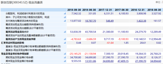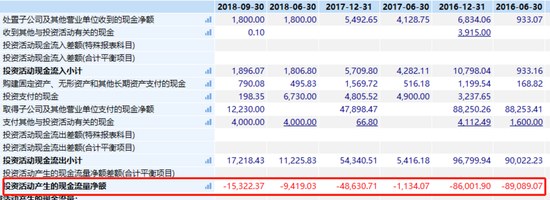 2016年中报以来,公司现金及现金等价物增加额不断萎缩。在2016年中期,公司现金增加额还有2.7亿,但此后不断萎缩,2018年三季度更是净减少2.5亿。