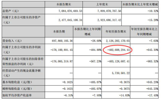 三季报显示,今年1-9月,达华智能实现营业收入21.26亿元,同比下降7.65%;归属于上市公司股东的净利润-4.03亿元,同比下降645.39%。