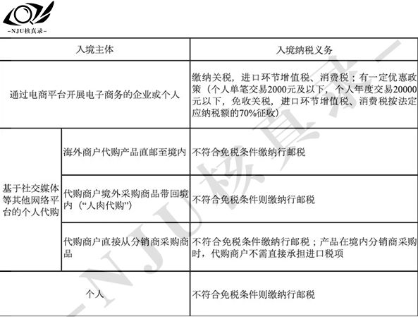 注:行邮税是行李和邮递物品进口税的简称,是专门适用于个人物品的税收征管措施,目的是照顾个人进口自用物品的合理需要,其中包含了进口环节的增值税和消费税,故也为对个人非贸易性入境物品征收的进口关税和进口工商税收的总称。