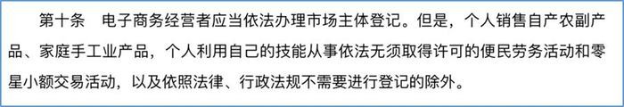 实际上,这一说法也并不准确。据《电商法》第十条对市场主体登记的规定,“个人利用自己的技能从事依法无需取得许可的便民劳务活动和零星小额交易活动,以及依照法律、行政法规不需要进行登记的”无需进行工商登记取得营业执照。因此对于低频率、小规模的代购活动,《电商法》还是保留了法律空间。但这并不意味着这类个人代购就不需要缴纳相关的税款。《电商法》第十一条中规定,即便这些电子商务经营者不需办理市场主体登记,但也要依法申请办理税务登记,如实申报纳税。
