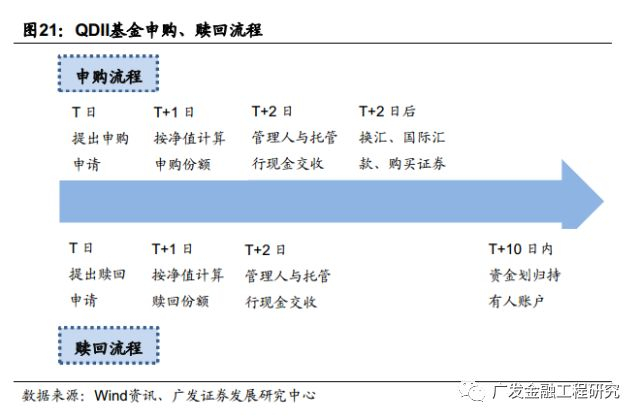 相比于普通类型的基金产品,QDII基金在申赎过程中增加了换汇和国际汇款环节,大部分产品的赎回资金通常在赎回申请成功后的T+10个工作日内到账,基金申赎周期更长,管理费率普遍略高于普通型基金。