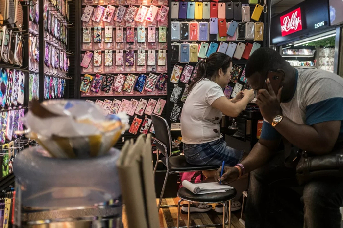 那些有着黑色或者褐色皮肤的商人,是南方大厦里流动迁徙的候鸟。一位学者曾经在索马里的网吧遇到打算去广州倒卖“冒牌”电子产品的阿卡,他抓狂地砸着键盘,“我根本找不到他们的网站,只有欧美品牌的。”信息壁垒依然严峻,南方大厦里的商人,也许只是拿着某位同乡给的名片,或者循着道听途说的消息而来。