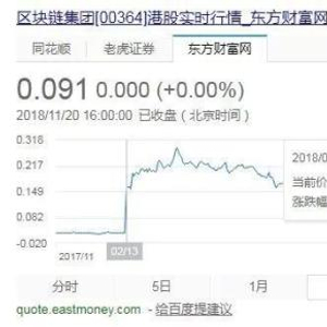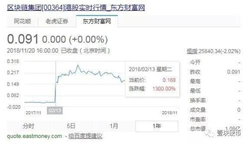 1月29日区块链集团开始停牌改名,股价报0.012港元。在比特币的熊市刚开始酝酿,还没有完全张口血盆大口时,这种通过改名区块链来自救的方式,似乎效果还不错,到2月13日区块链集团复牌,当日股价报0.168港元,涨幅达到惊人的1300%。