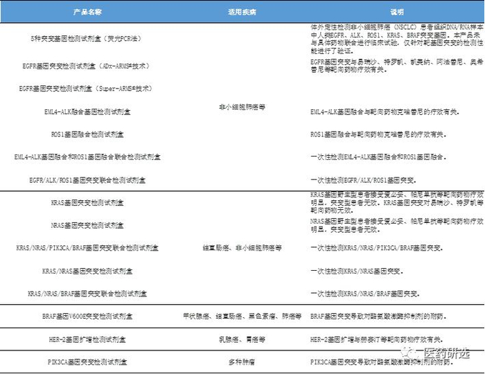 图表2:艾德生物部分已经获批伴随诊断和基因检测产品