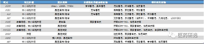 在伴随比较研究检测阶段,针对伴随诊断用途的基因变异类型及相应的靶向药物
