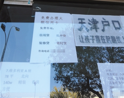 11月21日,燕郊某房地产中介门口张贴的首付贷广告。新京报记者 潘亦纯 摄