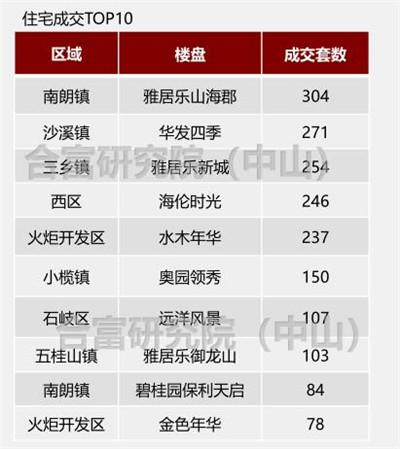 根据合富研究院(中山)监测: 上周(11.19-11.25)全市住宅网签量3666套,环比下降21%,同比上涨501%。在上周中山市各镇区住宅成交排名里,火炬开发区成交469排名第一,其中多为水木年华成交;南朗镇成交430套排名第二,以雅居乐山海郡成交最多,西区成交419套排名第三,其中以海伦时光成交最多。