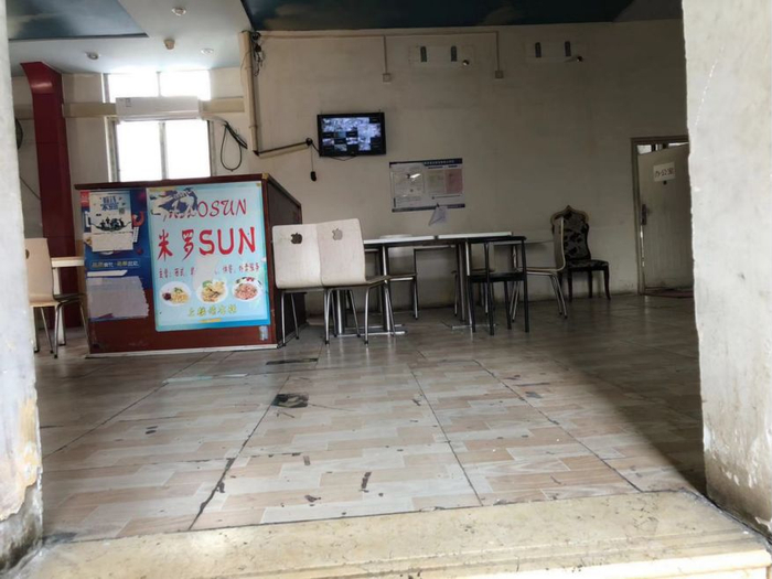 其中,三处美食城(熊猫星厨、利金康桥、营养小厨)基本无堂食。熊猫星厨与利金康桥实际为一条狭长厨房通道,入驻店铺(包括米有理由、二十五块半、三米粥铺、那些年便当等)厨房分排在通道两侧,各自占据一间屋,均无大堂。地面基本干净,个别店铺将垃圾与袋装食材堆放一处。