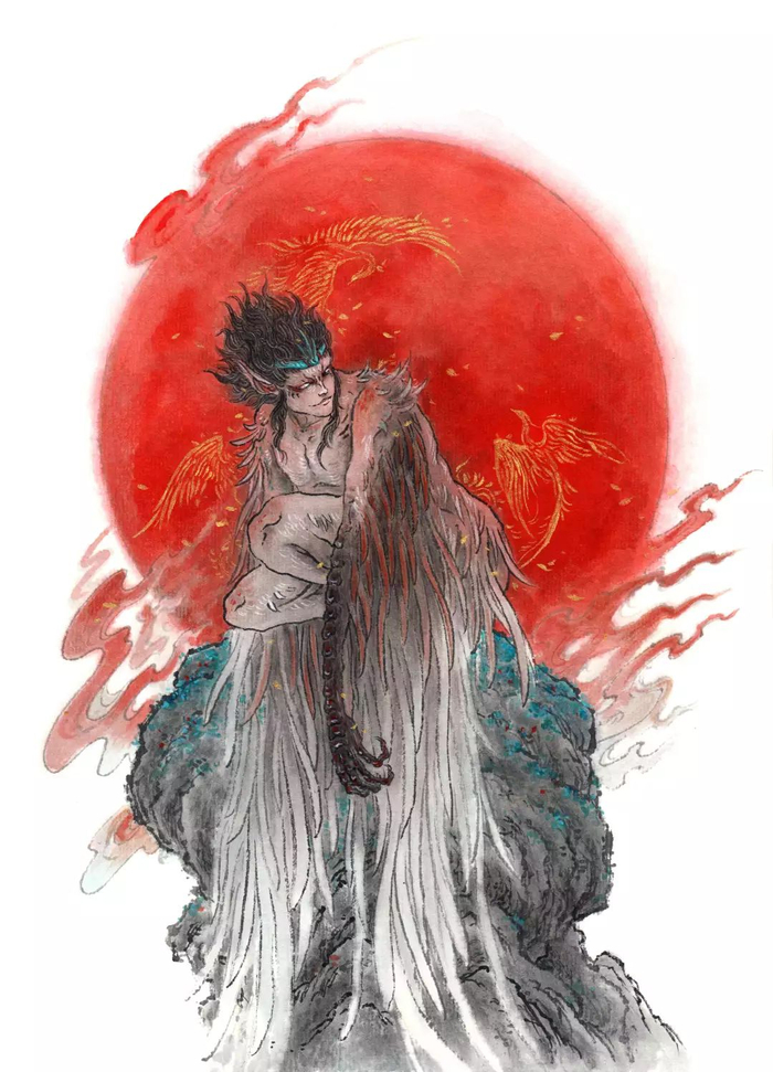 【解读】苗民长着翅膀,以肉为食,生活在西北海外、黑水之北。苗民姓釐,是颛顼的孙辈,颛顼生了驩头,驩头生了苗民。