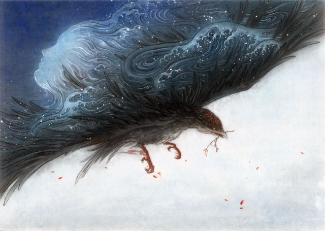 女娃变成精卫以后,衔西山的木头和石子,昼夜不停歇,期望靠自己的努力填平东海。所以,精卫在古代文学作品中成为坚毅不屈、自强不息的代名词。