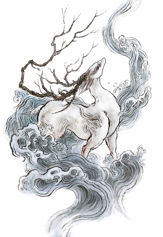 【解读】美丽但令人恐惧的青丘九尾狐,早已广为人知。其样子如同狐狸,有九条尾巴,能发出婴儿般的声音,会吃人。谁若是有幸吃到了九尾狐之肉,从此便能免于妖邪之气侵体。