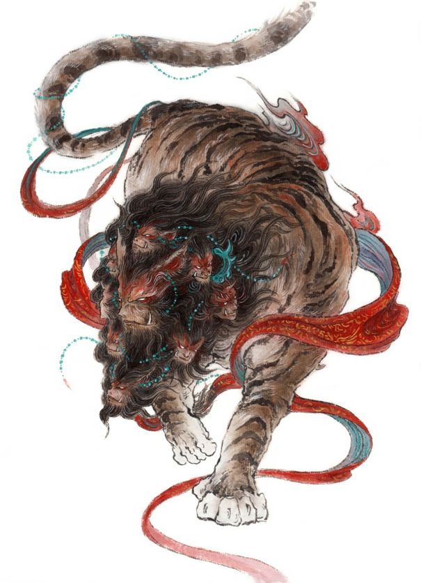 这些描写让库叔产生了诸多的想象,甚至还去翻找了相关图集,相信各位库友也见到过下图的异兽形象。