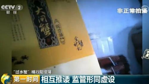 记者从高淳水产市场跟踪一辆装满“高淳螃蟹”的货车,最终开到了阳澄湖大闸蟹水产市场。工人把这些“高淳螃蟹”倒到玻璃缸里,第二天一早,当记者前来询问时,这些螃蟹就堂而皇之地变成“阳澄湖”大闸蟹了。