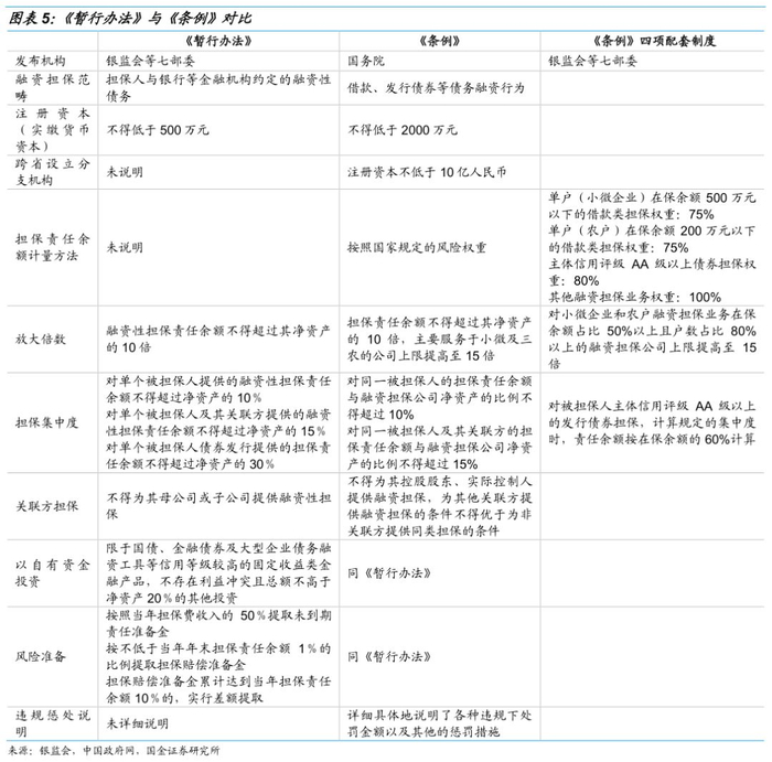 《条例》对融资担保行业的监管较《暂行办法》更为具体,首先提高了担保机构的准入门槛,注册资本由500万提高至2000万;其次从监管指标上加大了对小微企业与农户的扶持,符合政策导向;另外规定了担保责任余额、担保集中度等指标的计算权重,并在《条例》四项配套制度中予以明确;最后对于违反条例规定各种情形的处罚方式做出详细规定。