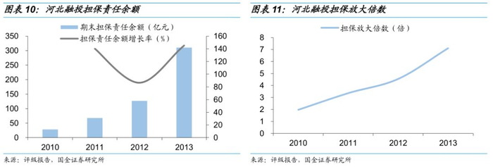 我们针对河北融投担保集团的事件进行简要的梳理分析。河北融投担保集团有限公司(以下简称“河北融投”)前身为成立于2007年的河北省国控担保有限公司,初始注册资本20亿元,经过更名、增资,截至2013年末,公司注册资本40亿元,实收资本40亿元,事发之前是国内资本规模较大的担保机构之一,河北融投控股集团有限公司为公司第一大股东,持股比例43.24%。公司担保业务以融资担保为主,并有少量非融资担保业务,融资担保业务以间接融资担保为主,其中流动资金贷款担保占比较高,其余为少量综合授信担保和委托贷款担保业务;非融资担保业务主要是诉讼保全担保、履约担保等业务。