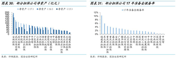 担保公司的股东背景及注册资本我们在图表19中已经列示,这一小节我们对担保公司的净资产及准备金拨备率进行分析。