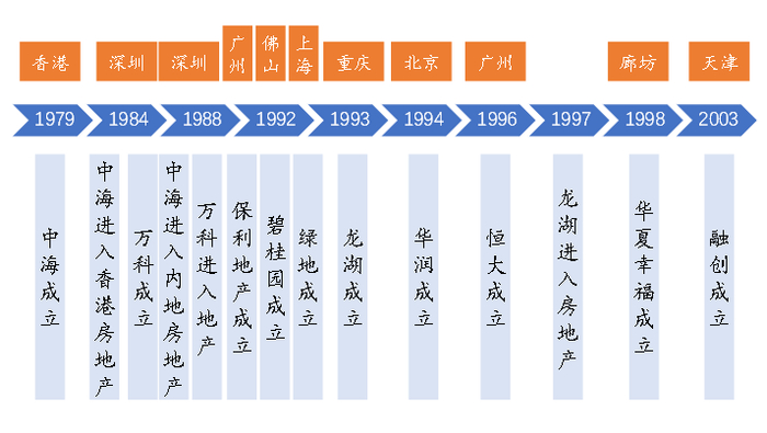 地域上来看,他们主要分布在以广州、深圳、佛山和香港为代表的珠三角地区,以北京和廊坊为代表的京津冀地区(稍后成立的融创在天津),以上海为代表的长三角地区,和以重庆为代表的成渝地区。
