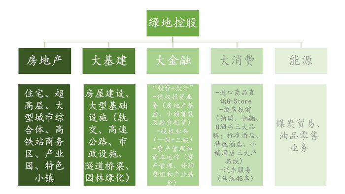 2015年,绿地控股借壳上市,公司业务包括房地产及其延伸业务、能源及相关贸易、汽车业务等,已在全球范围内形成以房地产开发为主业、“大基建、大金融、大消费”等多元产业并举发展的企业格局。