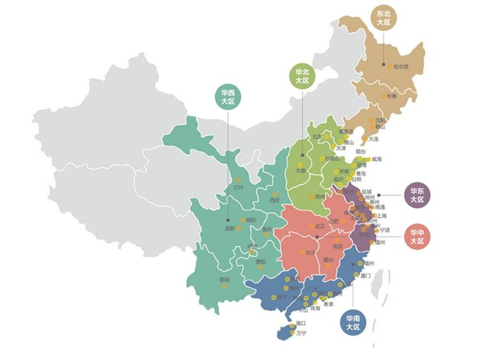 2016年,融创迅速完成一线、环一线及核心城市的全国化布局,形成8大区域的布局。