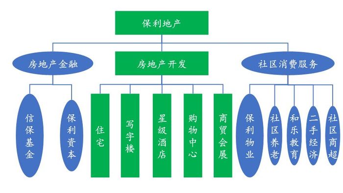 2015年,保利整体发展策略定型为以房地产开发经营为主,以房地产金融和社区消费服务为翼的“一主两翼”的业务板块布局。