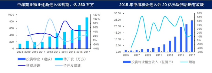 2017年,中海确立了聚焦住宅开发主业,持续加大商业地产投入,探索拓展以教育、养老、物流等创新业务的战略,构建更加均衡稳健、可持续发展能力更强的业务架构。根据中海“十三五”规划,商业地产将是公司的核心业务。