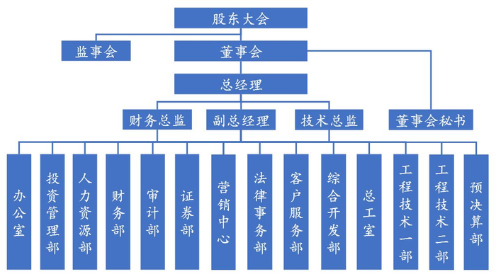 2006年上市时,保利的组织架构主要是直线职能型的形式,扁平但集权——董事会负责公司开发项目的重大投资决策,总经理负责组织项目的开发和经营,副总经理包括财务总监和技术总监分管项目运作的各项职能,各部门按项目分工,指定专人或小组负责各项具体工作。