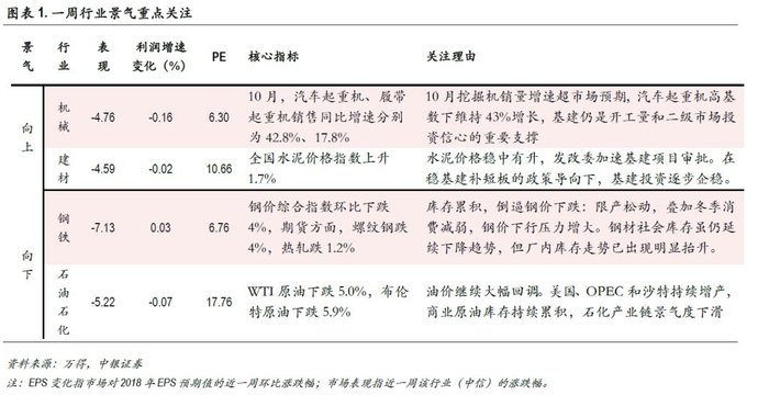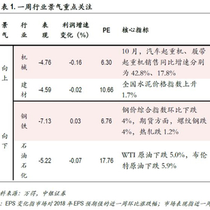 预期调升:轻工制造、家电和钢铁。本周预期调升行业多为中下游,调升幅度接近于0。