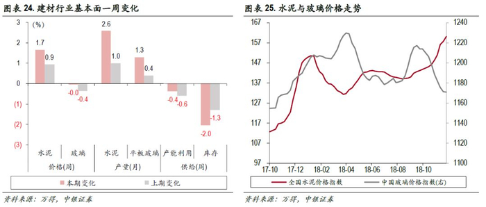 中游材料:钢铁方面,钢价跌幅进一步加大;水泥价格自十月初以来持续上涨;化工产品价格持续下跌。