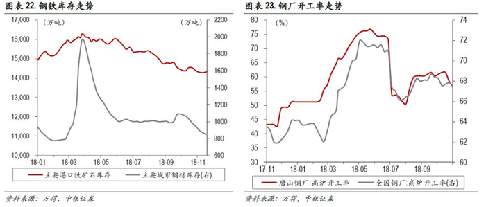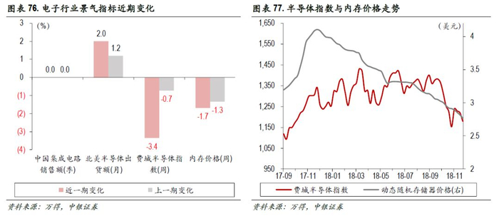 钢铁、石油石化边际向下。钢铁行业,库存累积,倒逼钢价下跌:限产松动,叠加冬季消费减弱,钢价下行压力增大;钢材社会库存虽仍延续下降趋势,但厂内库存已出现明显抬升;原油方面,油价继续大幅回调。美国、OPEC和沙特持续增产,商业原油库存持续累积,石化产业链景气度下滑。